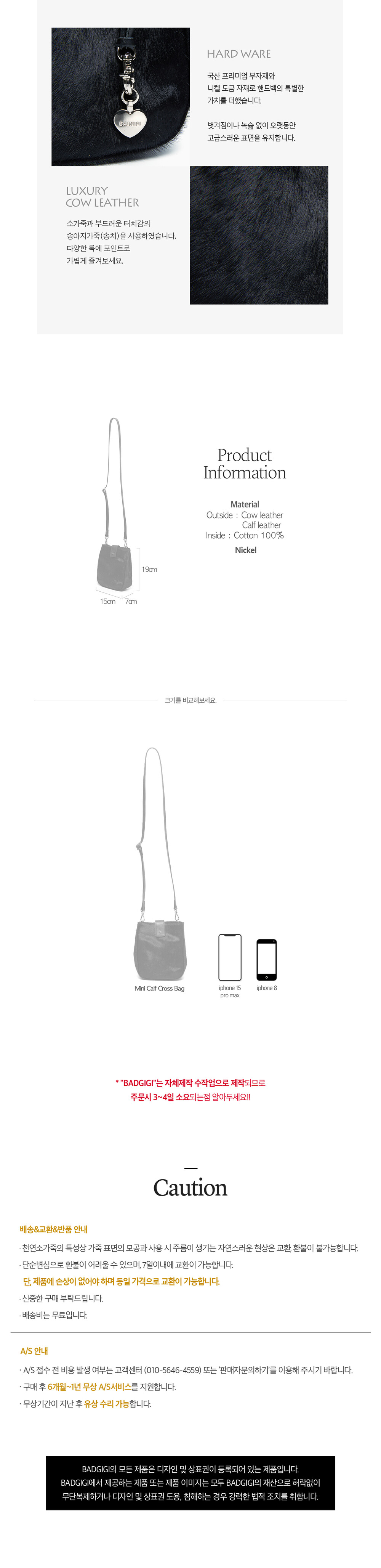 -소가죽과 부드러운 터치감의 송아지가죽(송치)을 사용하였습니다.