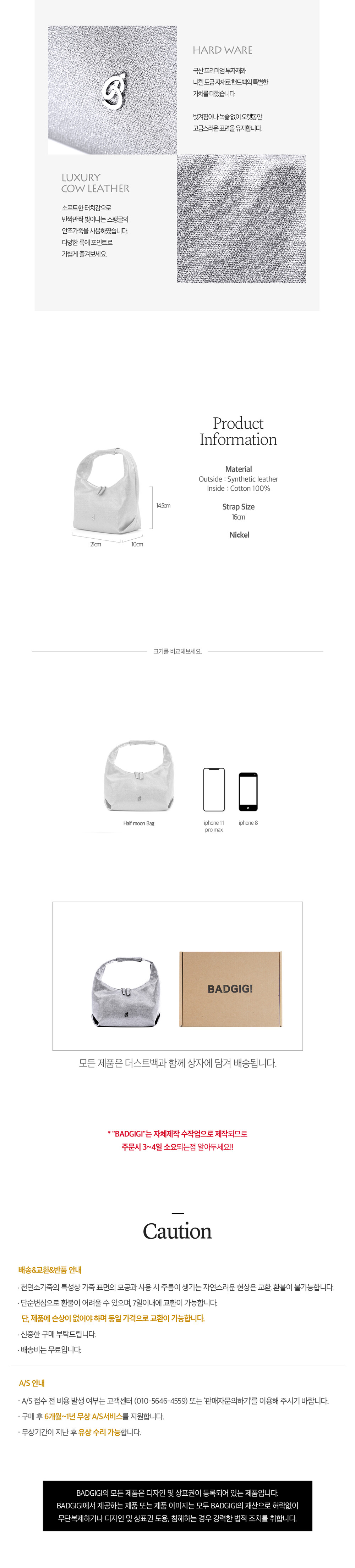 -고급스러운 광택과 질감의 인조가죽을 사용하였으며, 반짝반짝 빛이나는 글리터 가죽입니다.
