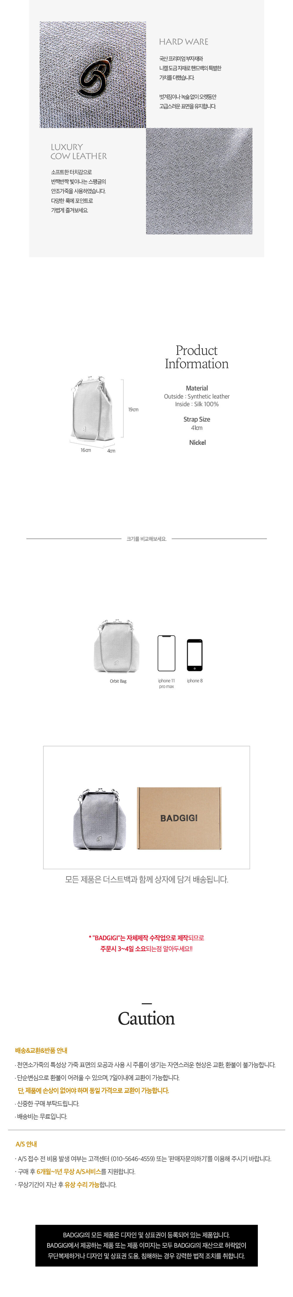 -고급스러운 광택과 질감의 인조가죽을 사용하였으며, 반짝반짝 빛이나는 글리터 가죽입니다.