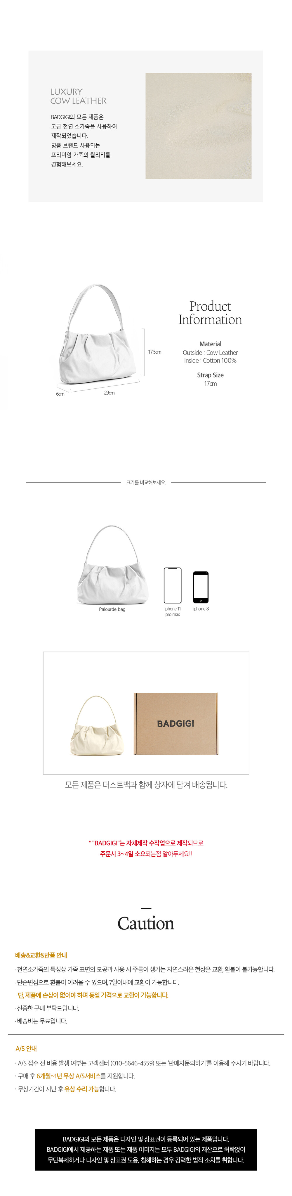천연소가죽 / 안감: 코튼100%